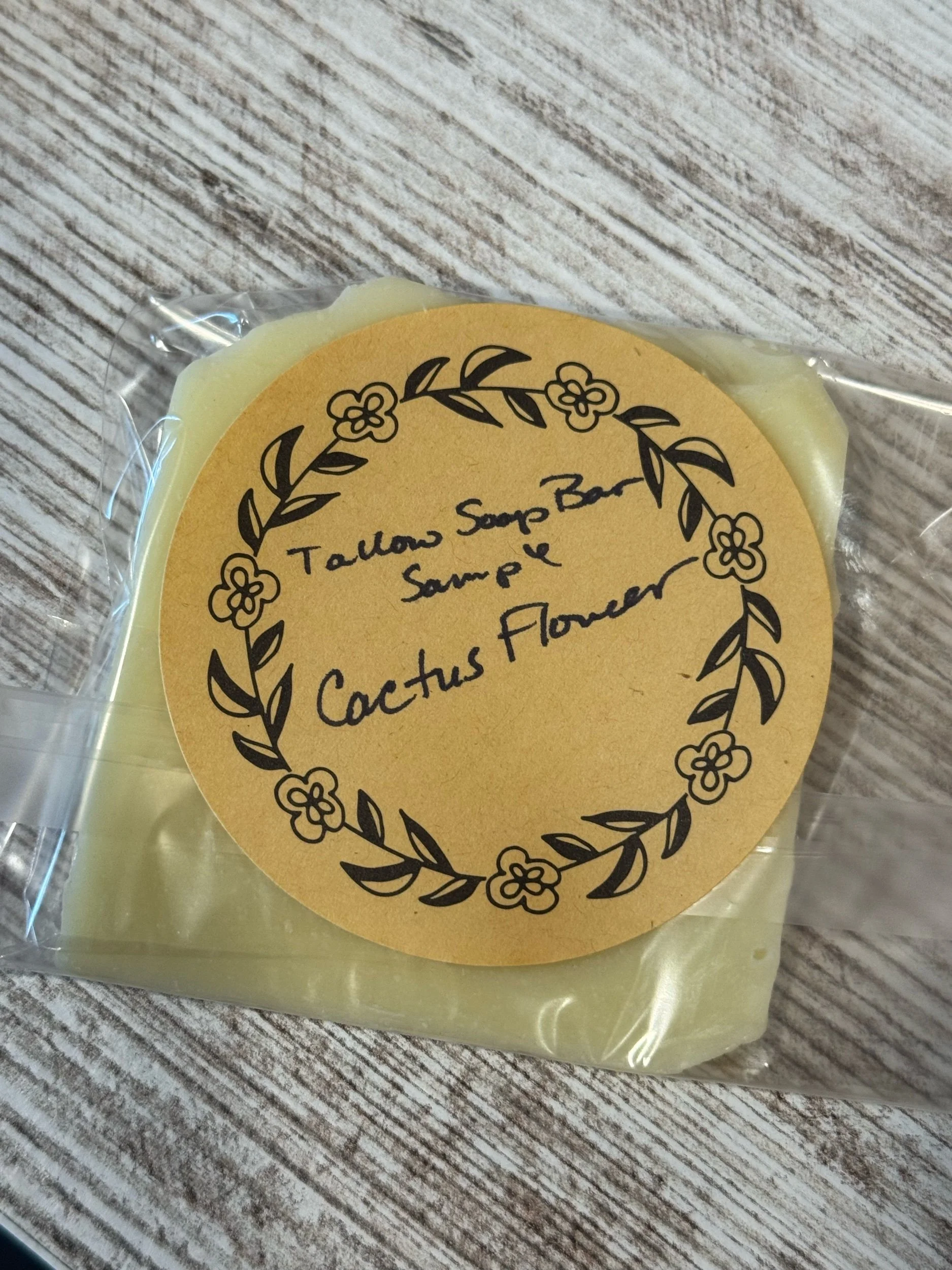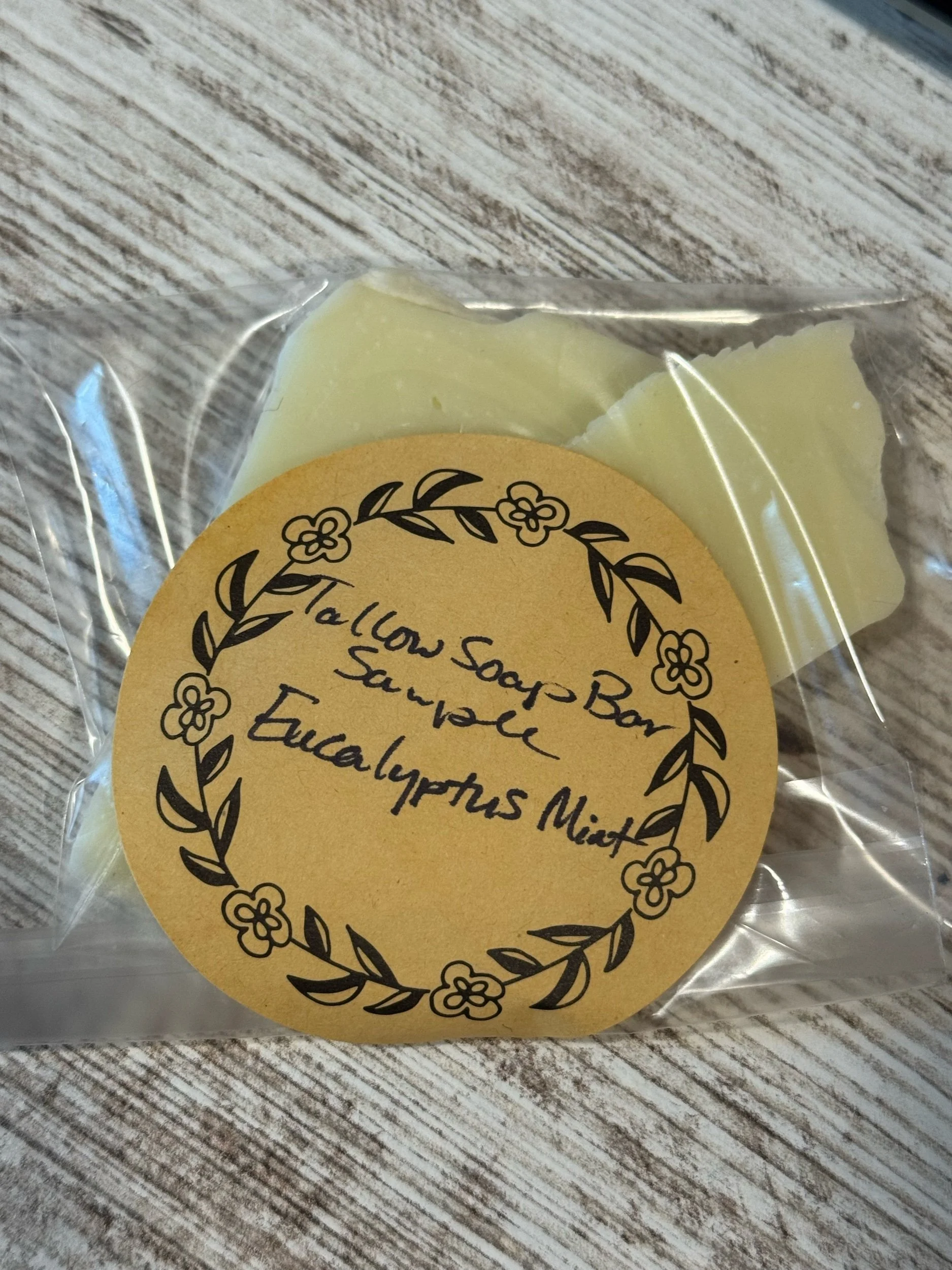 Shop › Tallow Soap Bar Samples Image 1 of 6 Image 2 of 6 Image 3 of 6 Image 4 of 6 Image 5 of 6 Image 6 of 6 Tallow Soap Bar Samples $1.95 Approximately .8-1.3oz each in sizeTry our soaps before you buy with these ends and pieces! Scent: Lavender Patchouli Eucalyptus Mint Pina Colada Tobacco Cactus Flower Lumber Yard Add To Cart Added! Approximately .8-1.3oz each in sizeTry our soaps before you buy with these ends and pieces! Whipped Tallow Balm: 3 Piece Sample Set $9.45 Set: Leather / Tobacco / Lumber Yard Lavender Patchouli / Honey / Blue Tansy Eucalyptus Mint / Rose Sandalwood / Citrus Dream Vanilla Orange 🍊/ Piña Colada 🍹/ Cactus Flower 🌵 Add Added! Gift Set : 2oz Whipped Tallow Balm + Lip Balm $9.99 Variation: Unscented Honey Lavender Vanilla Orange Blue Tansy Piña Colada Cactus Flower Add Added! Reviews Reviewer Name Review Date Star Rating Description Posted on Etsy Product Show More You Might Also Like Quick View 🛁 Bath Salts - Concentrated Magnesium Flake from $3.75 Quick View 🛁 Tallow Soap Bar from $6.95 Quick View Exfoliating Soap Saver from $1.75